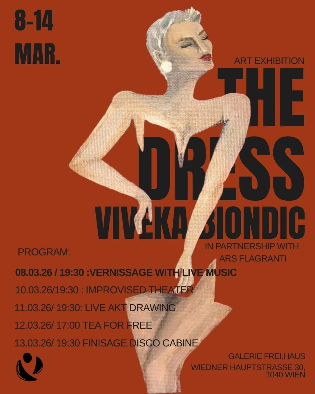 The Dress is a solo exhibition by Viveka Biondic presented at Galerie Frei.Haus. The project examines femininity, strength, and self-image through painting, focusing on women whose presence, confidence, and inner tension shape the work more than any garment itself.