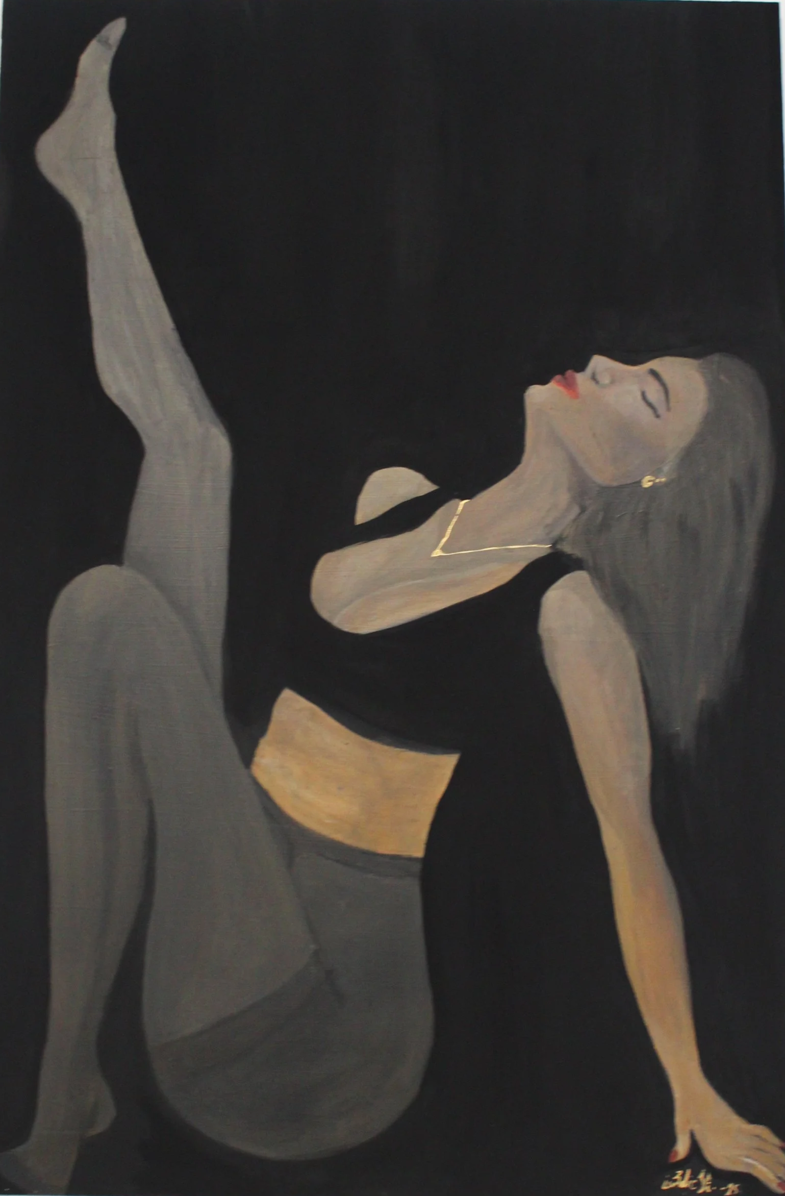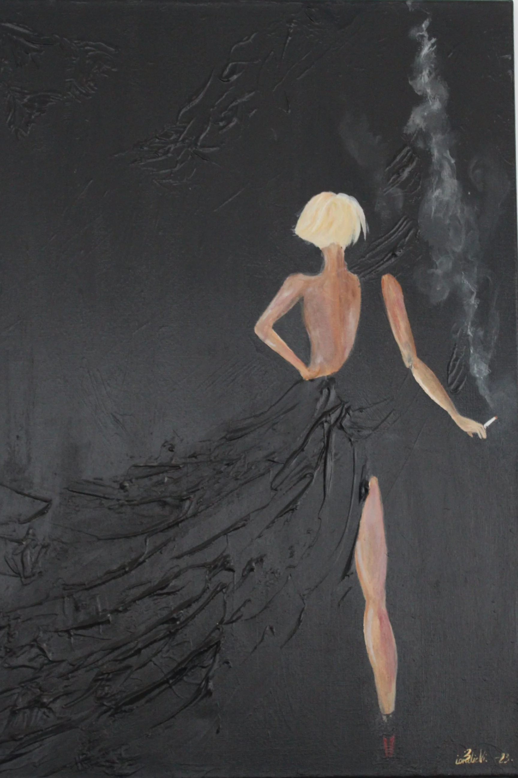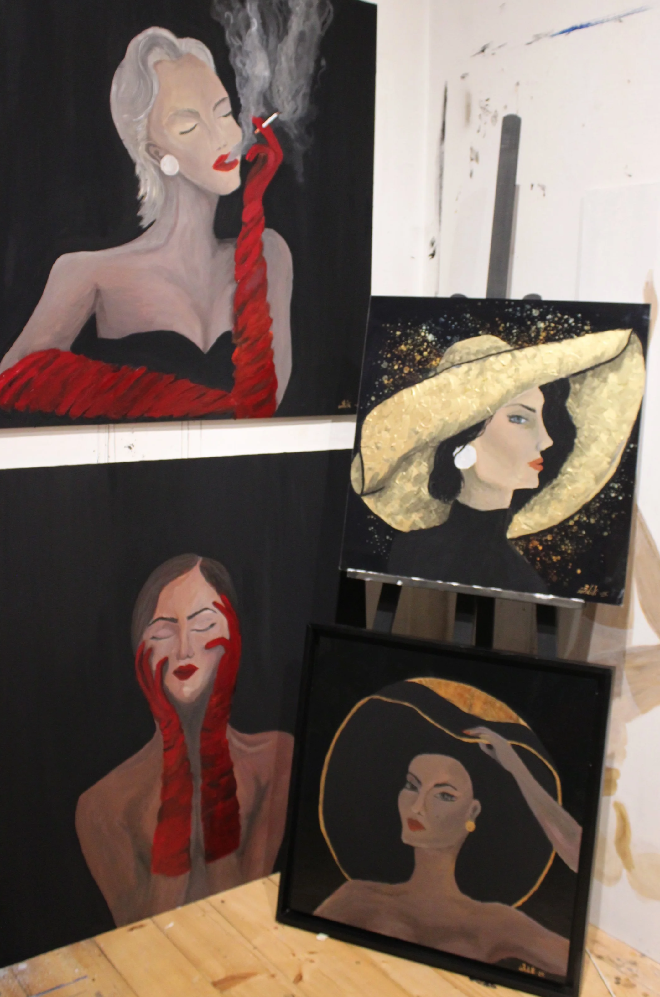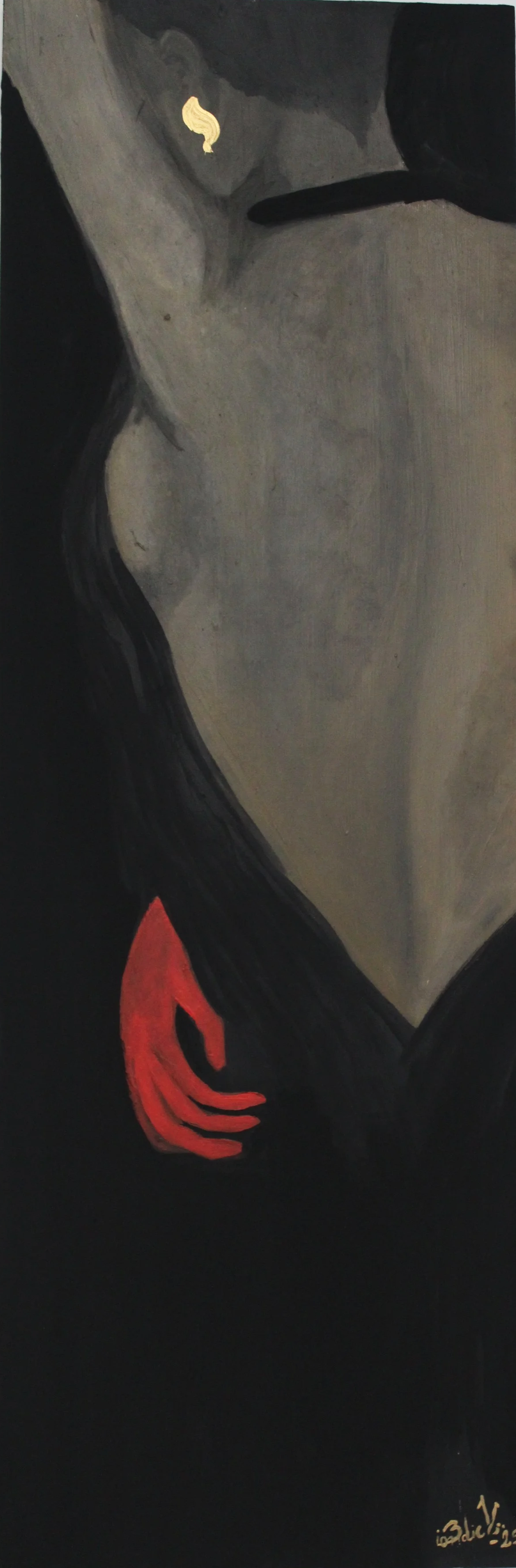 Vivekas paintings create the illusion of garments without ever painting a single dress, proving that identity and strength are the true couture. Each work becomes a portrait of defiance, elegance, and the unshakable truth that it’s the woman who makes the dress, never the other way around. In this project the artist experiments with different materials and technique from paper prints to photography and different metals.